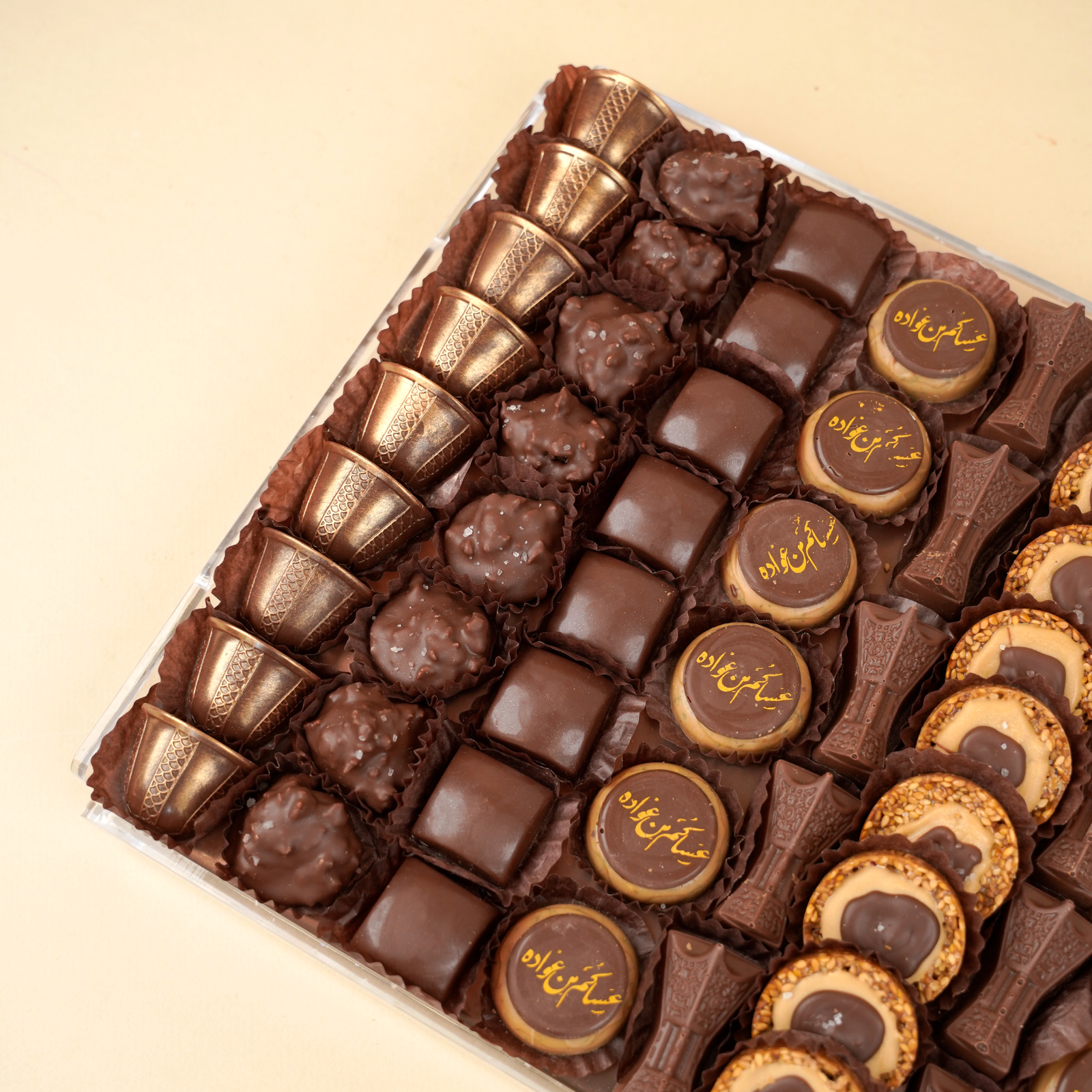 Presented in an elegant acrylic tray, it is perfect for those seeking a premium Eid chocolate assortment that blends tradition, abundance, and sophisticated presentation in one festive selection
